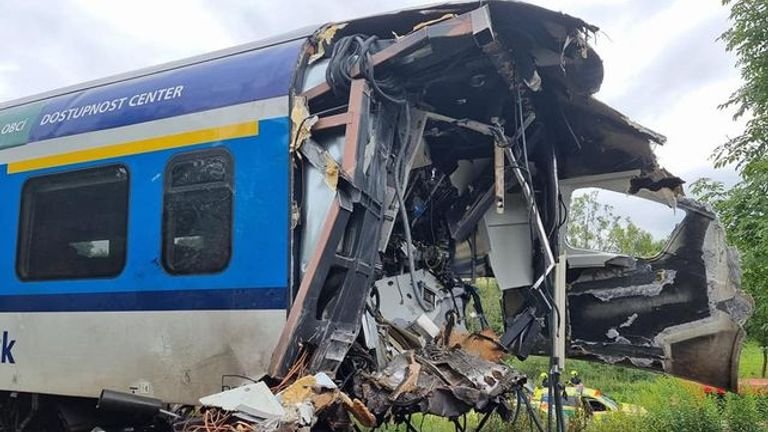 TV footage shown on Czech television showed the destroyed driver’s cabin of the fast train along with the smashed front of the local train. The footage also confirmed that both the trains remained upright on or near the tracks.